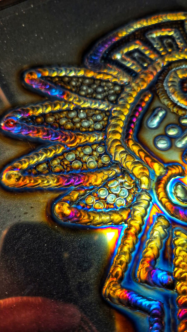 The Maya Priest – Einzigartige Weld Art auf Hochglanz-Edelstahl